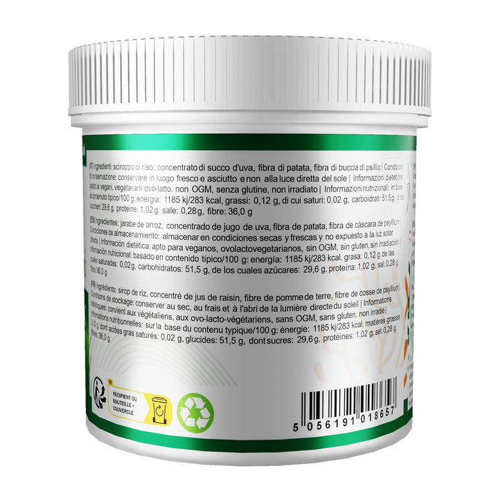 Ingredients: Rice Syrup, Grape Juice Concentrate, Potato Fibre, Psyllium Husk Fibre