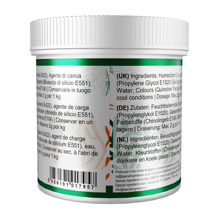 Ingredients: Humectant (Glycerol E422), Bulking Agent (Propylene Glycol E1520) Gelling Agent (Silicon Dioxide E551), Water, Colours (Quinoline Yellow E104). E104: may have an adverse effect on activity and attention in children.