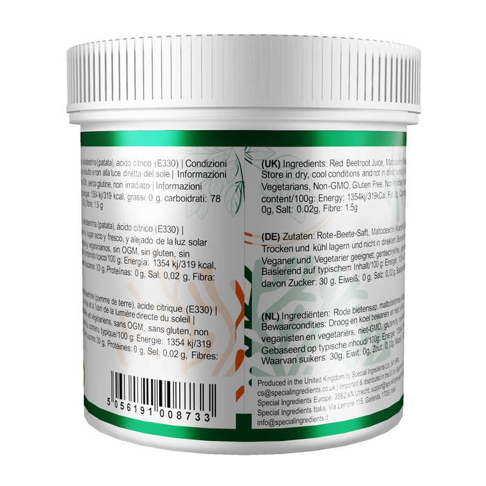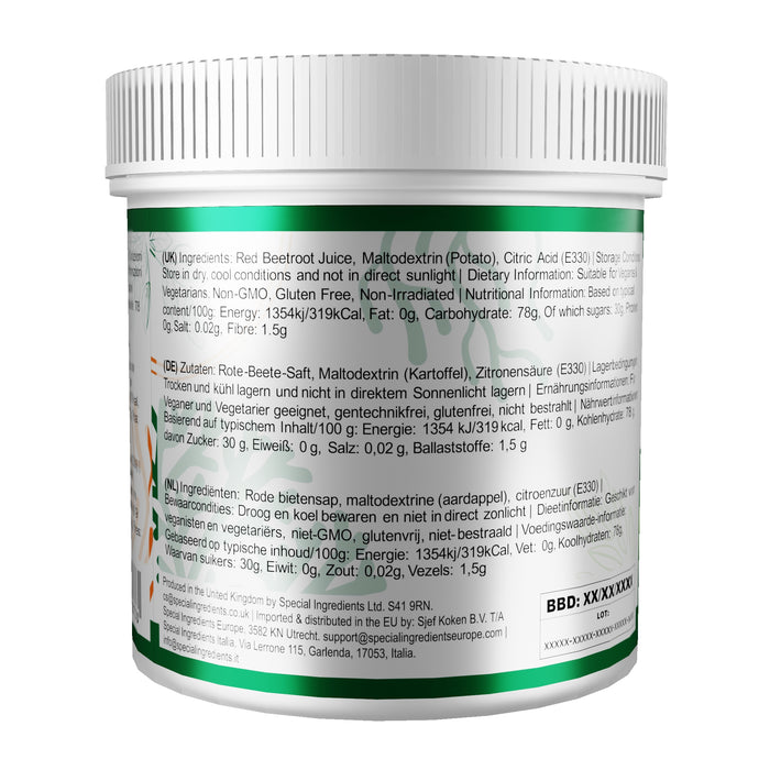 Ingredients: Red Beetroot Juice, Maltodextrin (Potato), Citric Acid (E330)