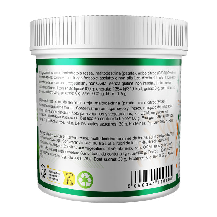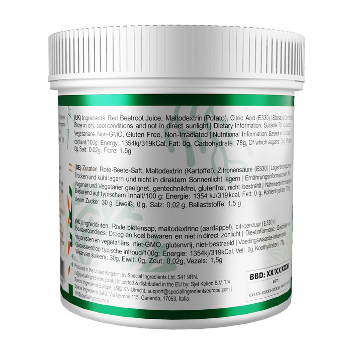 Ingredients: Red Beetroot Juice, Maltodextrin (Potato), Citric Acid (E330)