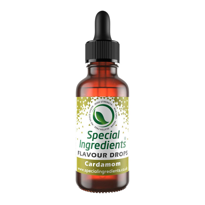 Cardamom Food Flavouring Drop: Food Flavouring Drops are premium quality water soluble intense flavours which provide an exceptionally efficient method of adding flavour. They are a highly concentrated, versatile, multi-use product for both food and liquid. They should be used sparingly; 1-2 ml is ample to flavour 1 litre of base liquid. Each 30ml bottle contains approximately 800 drops. Food Flavouring Drops disperse well in most foods and drinks.They are ideal for flavouring cakes, icings, fondants, ice cream, sorbets, cupcakes, pastry, salads, sauces, frostings, ganache, desserts, cocktails, drinks, cream, wine, beer, spirits, sweets and more. They can also be used to enhance the flavour of a dish, without changing the texture of the original product. Allergen Free, Suitable for Vegans, Ovo-lacto Vegetarians & Vegetarians, Non-GMO, Gluten Free, No Added Sugar.