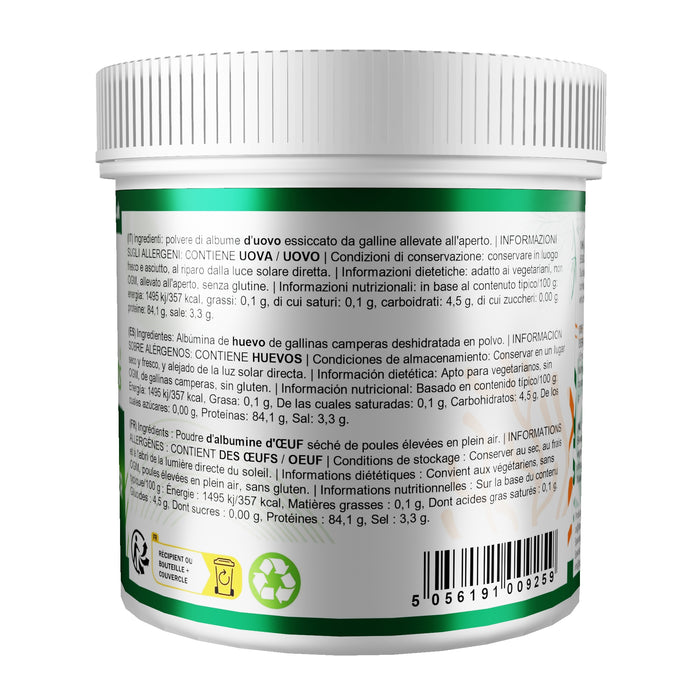 Ingredients: Dried Free Range EGG Albumen Powder.