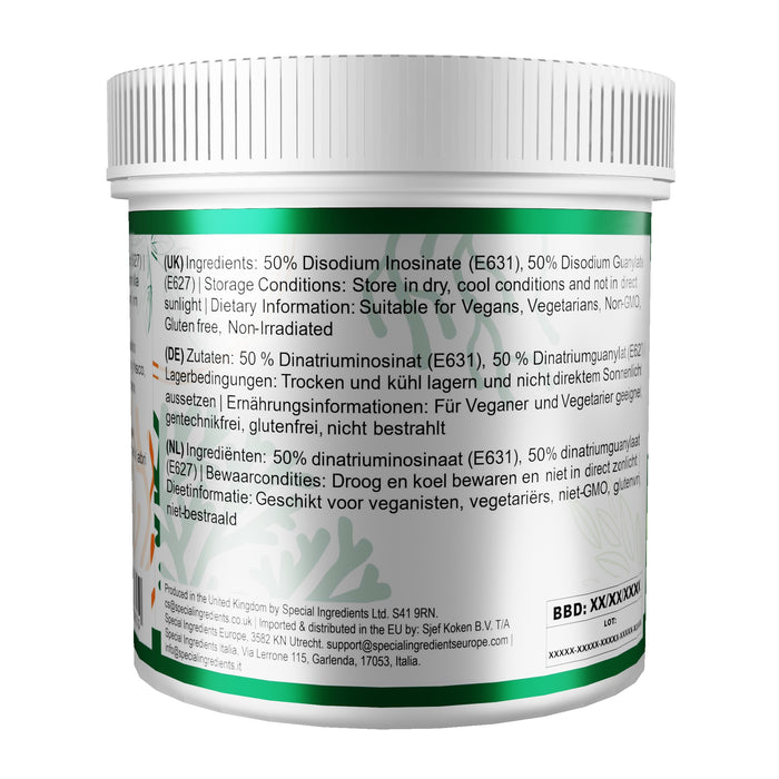 Ingredients: 50% Disodium Inosinate (E631), 50% Disodium Guanylate (E627).