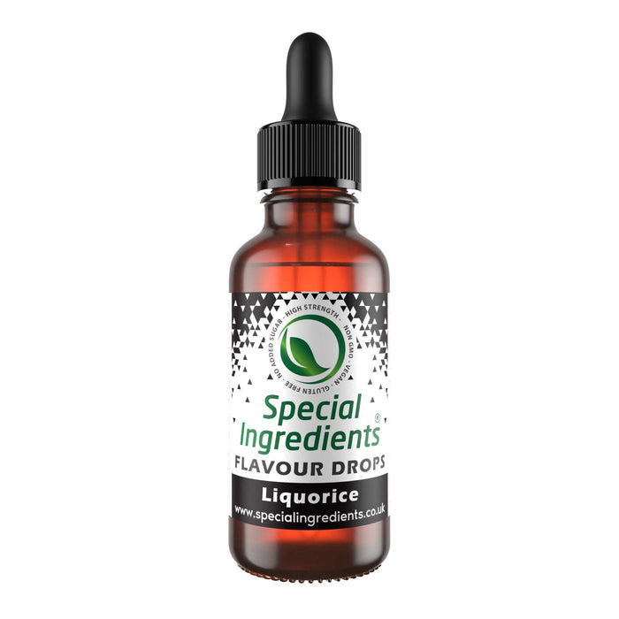 Liquorice Food Flavouring Drop: Food Flavouring Drops are premium quality water soluble intense flavours which provide an exceptionally efficient method of adding flavour. They are a highly concentrated, versatile, multi-use product for both food and liquid. They should be used sparingly; 1-2 ml is ample to flavour 1 litre of base liquid. Each 30ml bottle contains approximately 800 drops. Food Flavouring Drops disperse well in most foods and drinks.They are ideal for flavouring cakes, icings, fondants, ice cream, sorbets, cupcakes, pastry, salads, sauces, frostings, ganache, desserts, cocktails, drinks, cream, wine, beer, spirits, sweets and more. They can also be used to enhance the flavour of a dish, without changing the texture of the original product. Allergen Free, Suitable for Vegans, Ovo-lacto Vegetarians & Vegetarians, Non-GMO, Gluten Free, No Added Sugar.