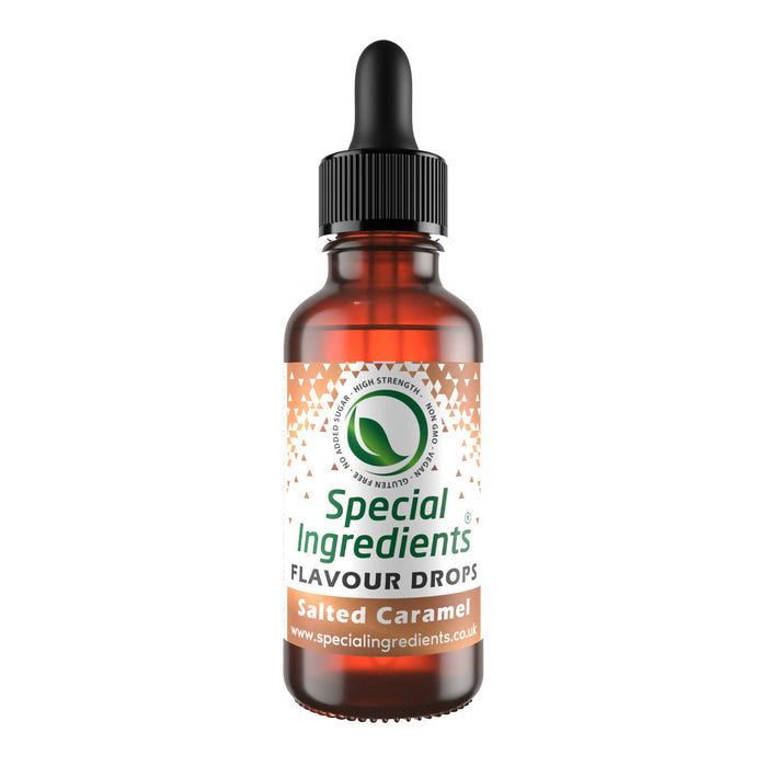 Salted Caramel Food Flavouring Drop: Food Flavouring Drops are premium quality water soluble intense flavours which provide an exceptionally efficient method of adding flavour. They are a highly concentrated, versatile, multi-use product for both food and liquid. They should be used sparingly; 1-2 ml is ample to flavour 1 litre of base liquid. Each 30ml bottle contains approximately 800 drops. Food Flavouring Drops disperse well in most foods and drinks.They are ideal for flavouring cakes, icings, fondants, ice cream, sorbets, cupcakes, pastry, salads, sauces, frostings, ganache, desserts, cocktails, drinks, cream, wine, beer, spirits, sweets and more. They can also be used to enhance the flavour of a dish, without changing the texture of the original product. Allergen Free, Suitable for Vegans, Ovo-lacto Vegetarians & Vegetarians, Non-GMO, Gluten Free, No Added Sugar.