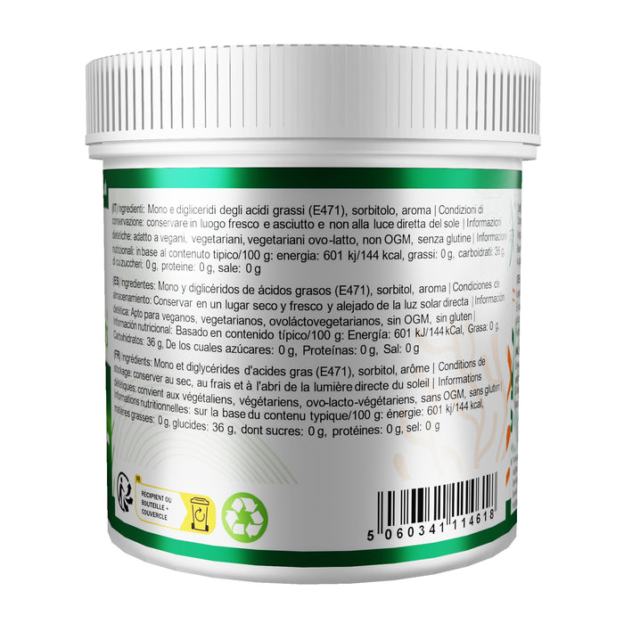 Ingredients: Mono and Diglycerides of fatty acids (E471), Sorbitol, Flavouring