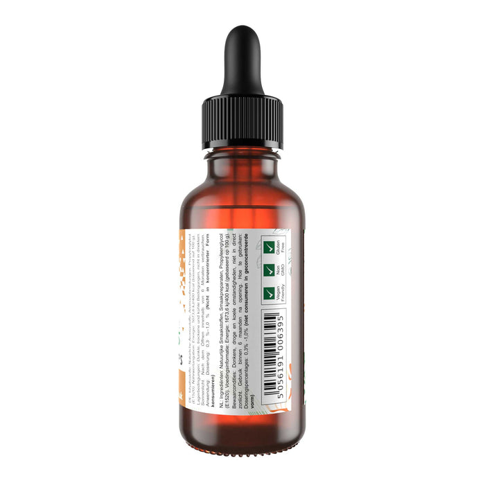 Ingredients: Natural flavouring substances, Flavouring preparations, Propylene Glycol (E1520).