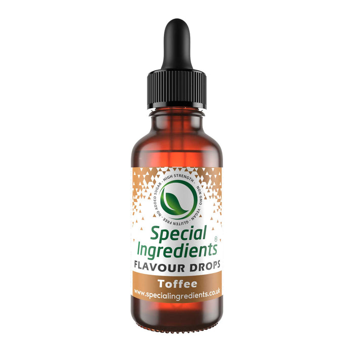 Toffee Food Flavouring Drop: Food Flavouring Drops are premium quality water soluble intense flavours which provide an exceptionally efficient method of adding flavour. They are a highly concentrated, versatile, multi-use product for both food and liquid. They should be used sparingly; 1-2 ml is ample to flavour 1 litre of base liquid. Each 30ml bottle contains approximately 800 drops. Food Flavouring Drops disperse well in most foods and drinks.They are ideal for flavouring cakes, icings, fondants, ice cream, sorbets, cupcakes, pastry, salads, sauces, frostings, ganache, desserts, cocktails, drinks, cream, wine, beer, spirits, sweets and more. They can also be used to enhance the flavour of a dish, without changing the texture of the original product. Allergen Free, Suitable for Vegans, Ovo-lacto Vegetarians & Vegetarians, Non-GMO, Gluten Free, No Added Sugar.